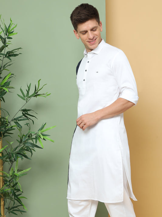 WHITE SOLID PATHANI KURTA SET