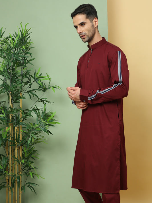 MAROON SOLID PATHANI KURTA SET