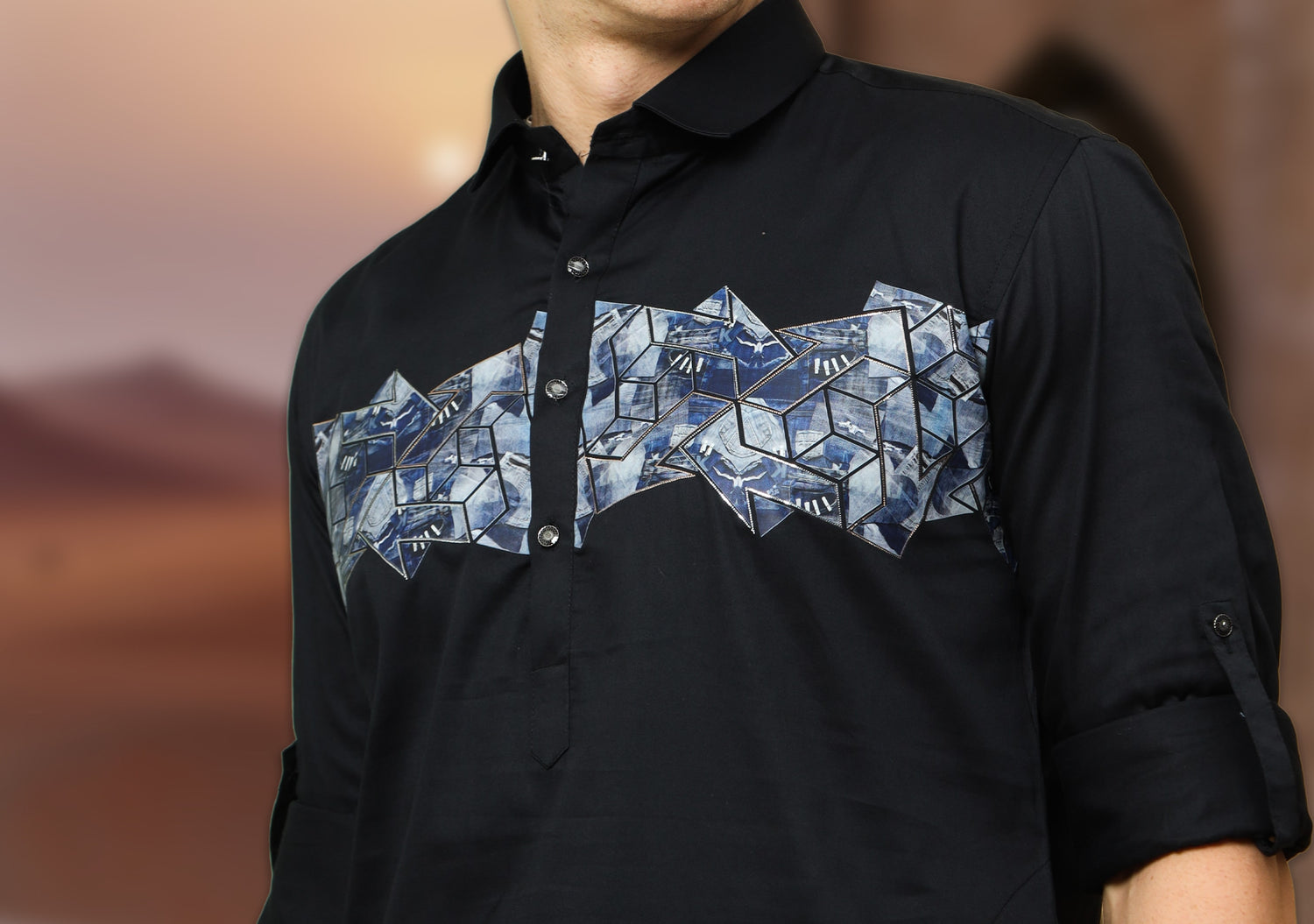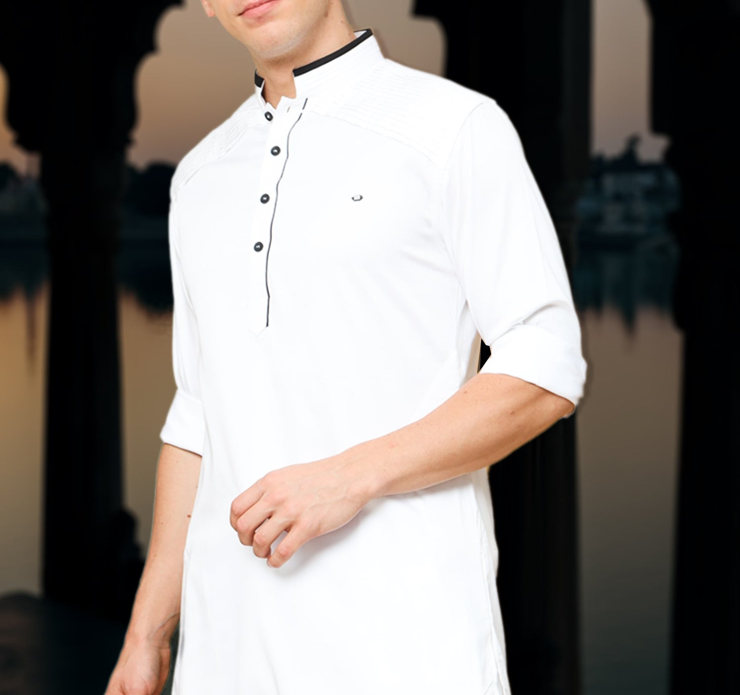 WHITE & BLACK PATTERNED PATHANI KURTA SET